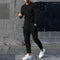 This men’s 2 piece lounge set includes a solid long sleeve T-shirt and matching jogger pants. The top features a round neckline, long sleeves, and a straight hem. The pants have a drawstring at the waistband and stitched seam lines along the front of each leg. The leg opening is narrower toward the ankle.