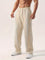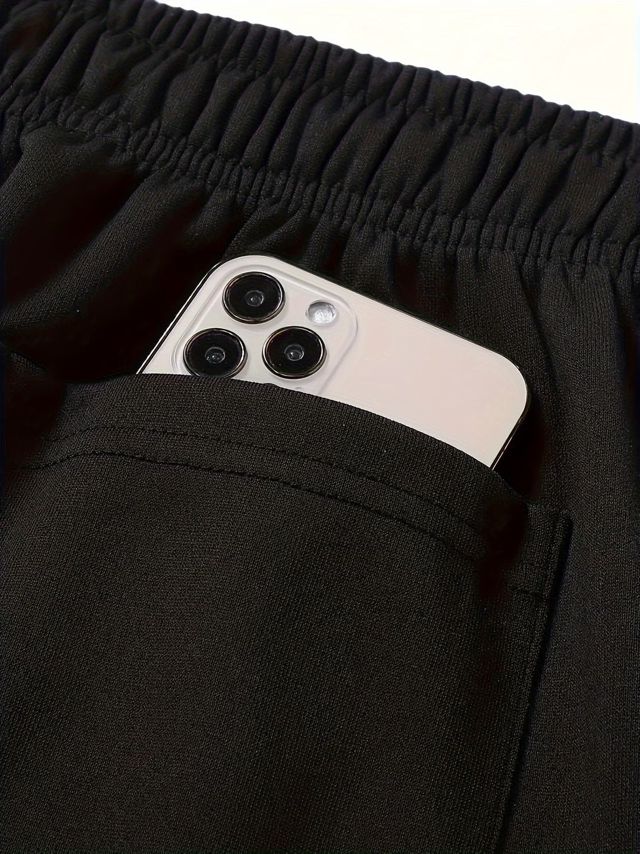 These men’s sweatpants feature a straight leg cut with a gathered waistband and visible drawstring at the front. Side seam pockets are present, along with a single patch pocket at the back. The legs fall straight from hip to hem without ribbed cuffs. Stitching lines are visible along the outer and inner seams.