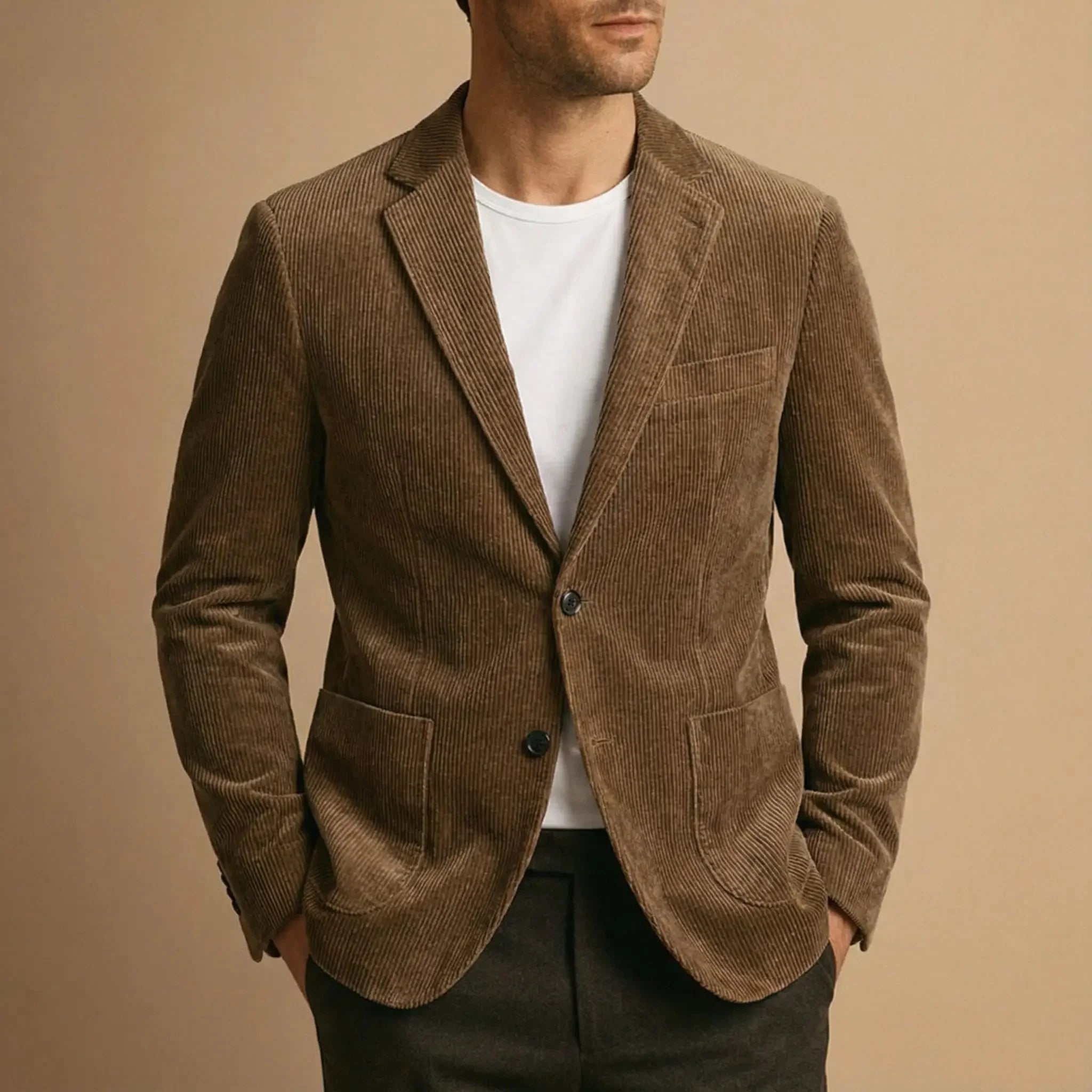 Men’s Notch Lapel Button Front Corduroy Blazer Jacket