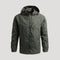 This men’s windbreaker jacket features a hooded neckline with adjustable drawcord toggles. It has a full zip front closure extending from the hem to the collar. A vertical zip pocket is positioned on the chest, along with additional side pockets. The sleeves are long with adjustable cuff tabs.