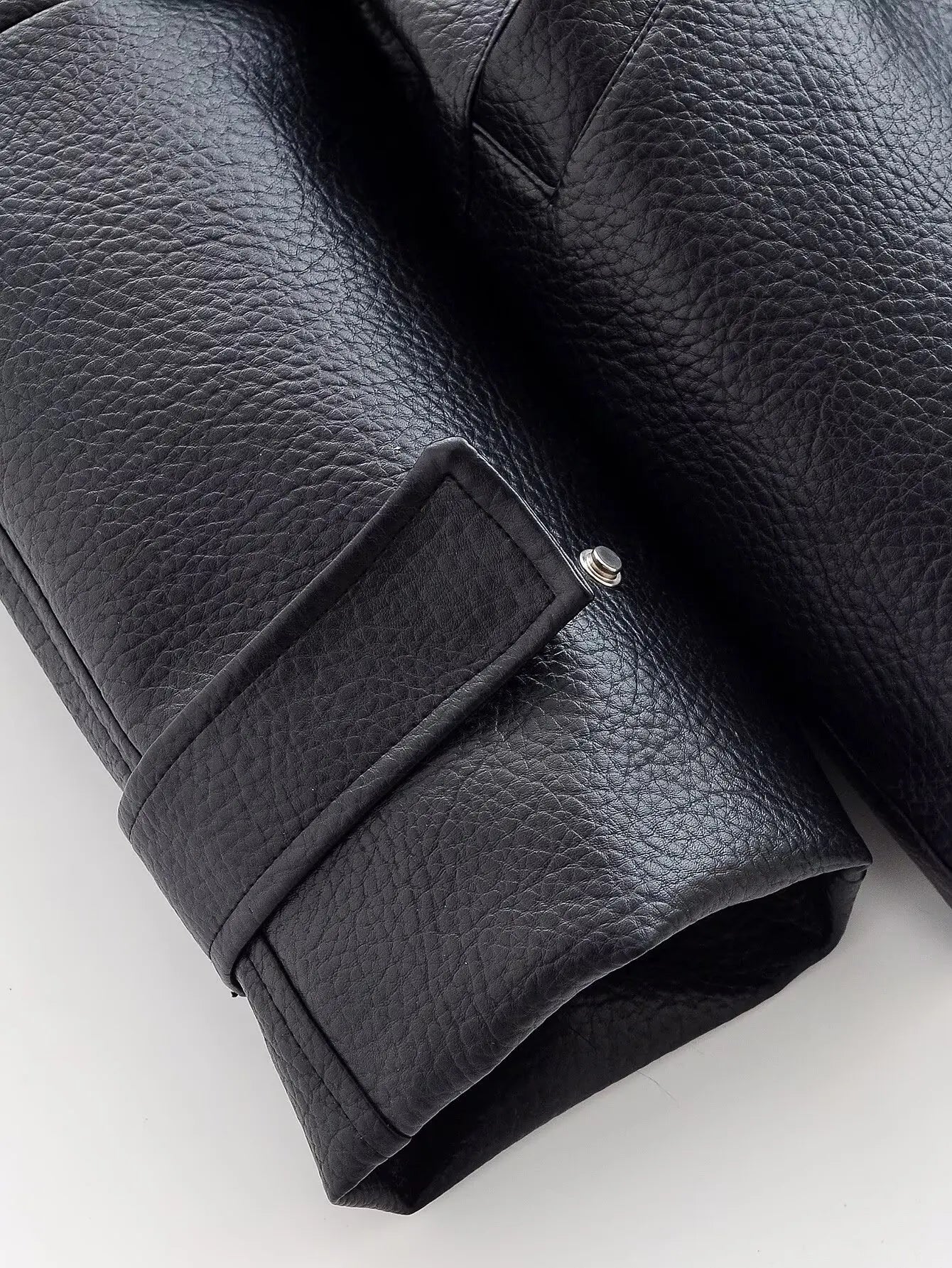 - Closure: Front zip with snap-button placket.