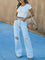 - Leg cut: Wide, full-length legs with a straight outline.