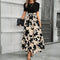 This women's maxi dress features a V-neckline and short sleeves that end above the elbow. A repeating floral pattern is displayed across the entire surface of the garment. The waist includes a horizontal seam with an attached fabric tie that can be knotted at the front. The skirt extends to the ankles and has a straight hemline. This item for the female gender contains a vertical seam along the center of the back.